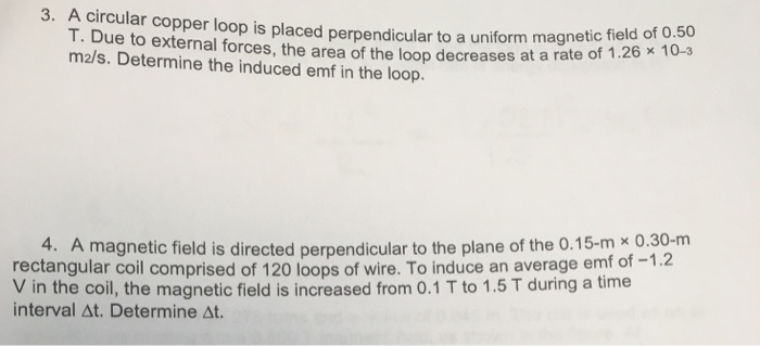 A circular copper loop is placed perpendicular to a uniform magnetic field of 0. A circular copper loop is placed perpendicular to a uniform magnetic field of 075 T. Determine the induced emf in the loop.